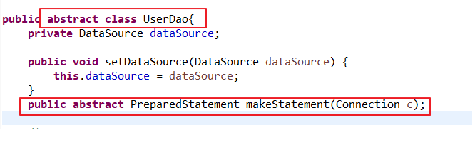 여기서 두번째 PreparedStatement를 만들어줄 외부기능 <- 이부분이 전략패턴에서 전략이라고 볼수 있다. 전략패턴의 구조를 따라 이부분을 인터페이스로 만들어 인터페이스메소드를 통해 PreparedStatement를 생성하는 전략을 호출해주면 된다. 이때 PreparedStatement를 생성할때 Context에서 만든 DB커넥션을 전달해줘야 한다.